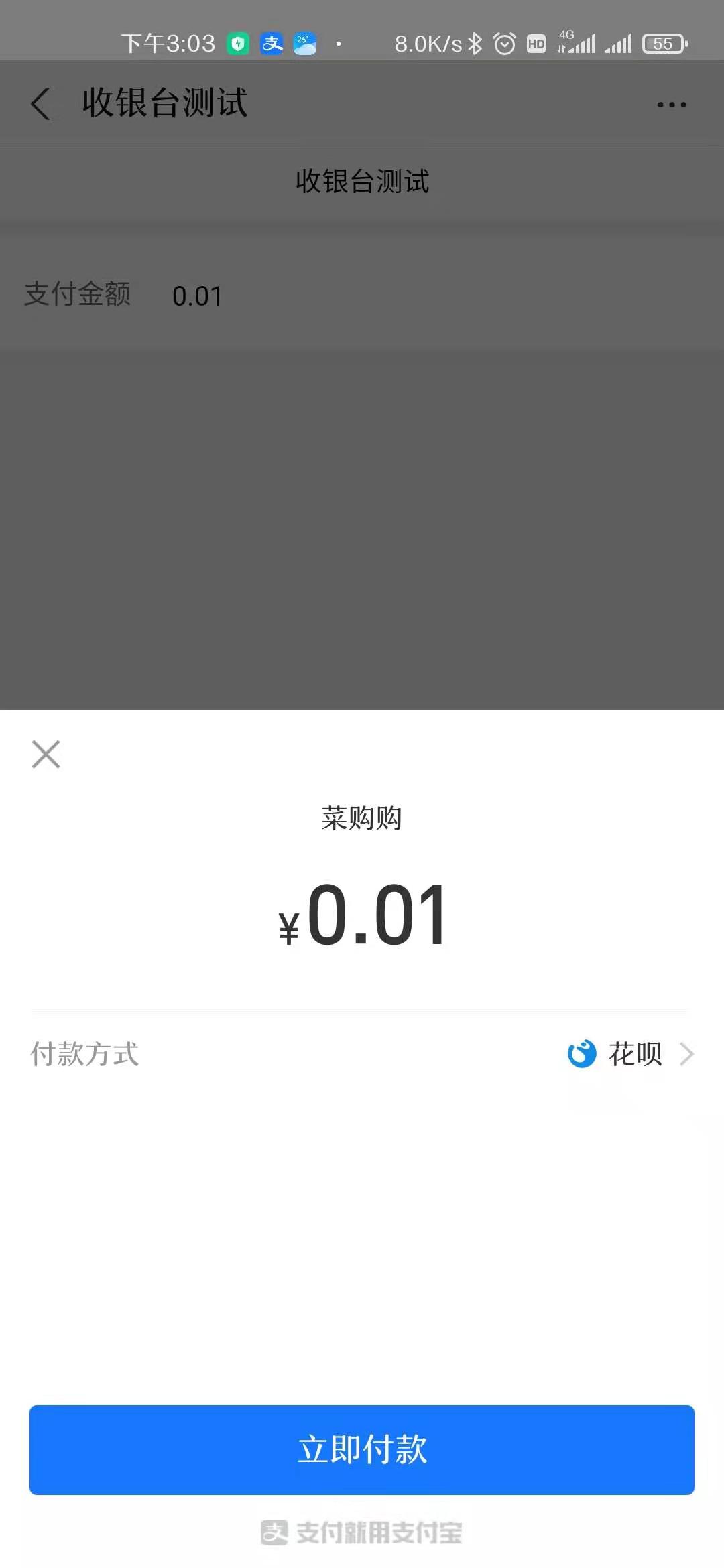 修正后支付寶掃碼的效果