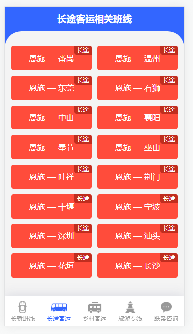 點上面鏈結,查看全部 恩施客運長途車班信息
