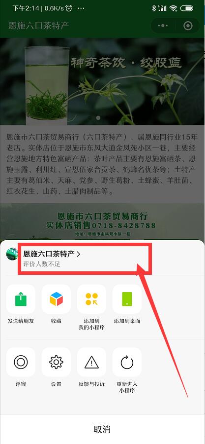 2.然后在彈出的 菜單中點(diǎn)紅色框起來(lái)的 小程序圖標(biāo)和名字