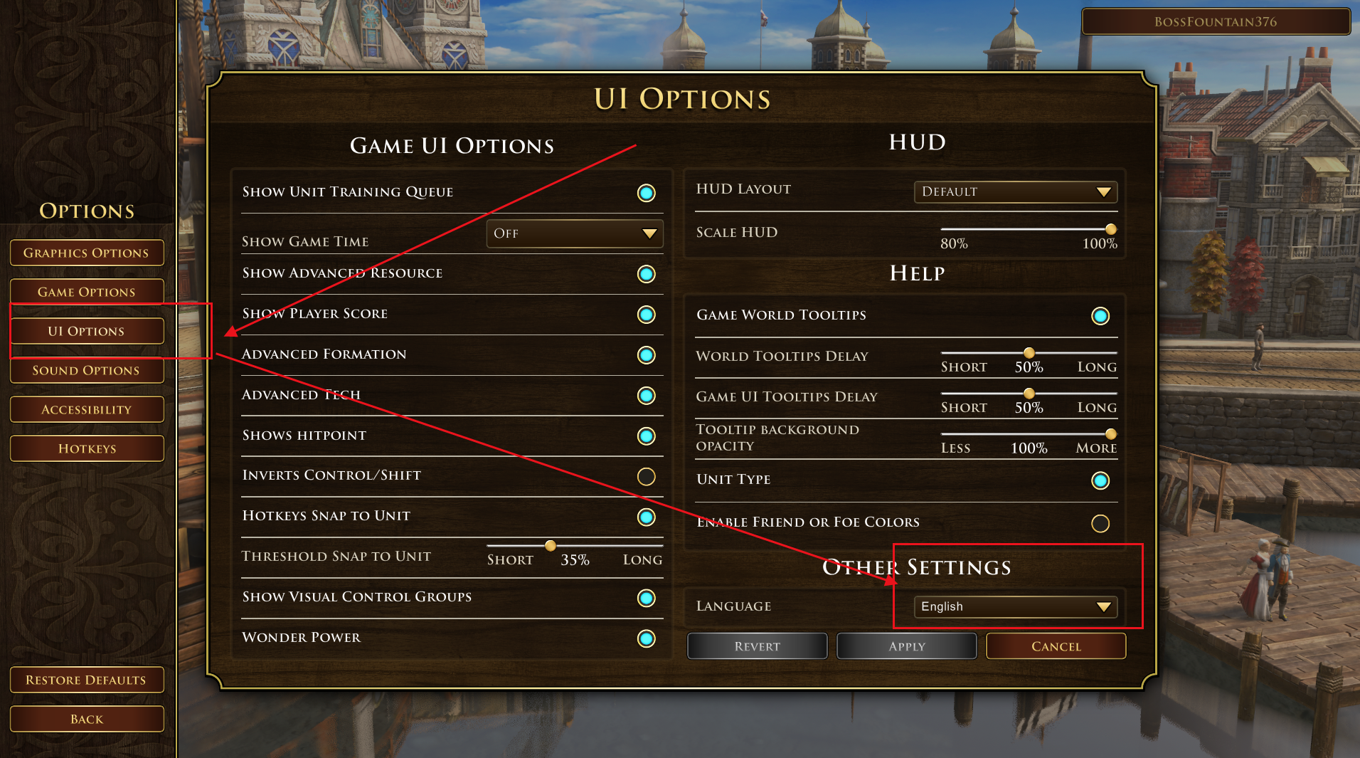 好多新手或英文不好的玩家不會改語言,這里截圖教大家改