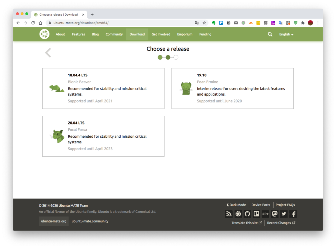 首先我們需要制作一個基于 debian 的 Linux 發(fā)行版 的 live USB,可以在不執(zhí)行安裝的前提下通過 U 盤運(yùn)行系統(tǒng),這里我挑選了我個人比較熟悉的 Ubuntu Mate 最新鏡像,這里我在其官網(wǎng)上下載了64 位的「ubuntu mate 20.04 LTS」鏡像。