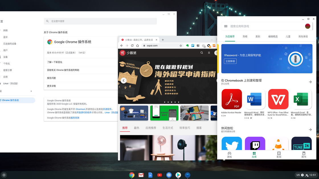 至于 Android 部分則需要進(jìn)行激活內(nèi)置的 Google Play Store 應(yīng)用商店,在系統(tǒng)設(shè)置中打開應(yīng)用,根據(jù)步驟完成就會出現(xiàn),其中應(yīng)用部分會根據(jù)你的系統(tǒng)處理器架構(gòu)自動匹配好適合 Chrome OS 的 Android 應(yīng)用,這樣就避免出現(xiàn)不必要的應(yīng)用兼容性問題。