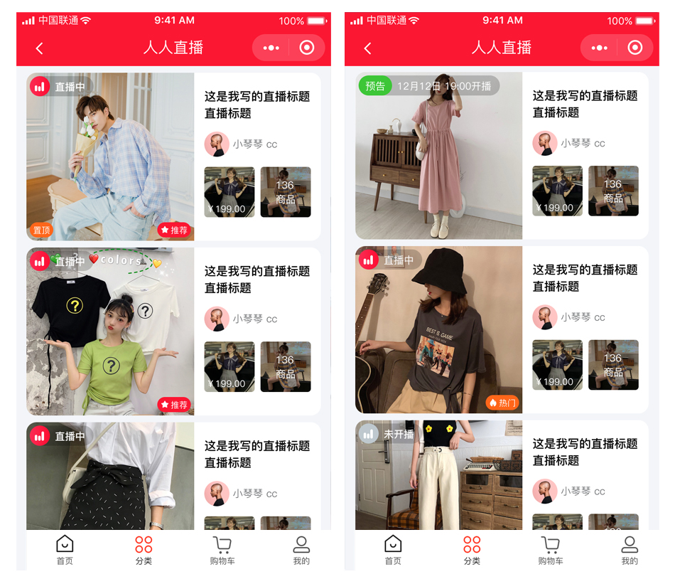 訂閱提醒:開播前用戶可進(jìn)入直播間點擊“開播提醒”進(jìn)行訂閱,直播開始后用戶將收到一條模板消息提醒;