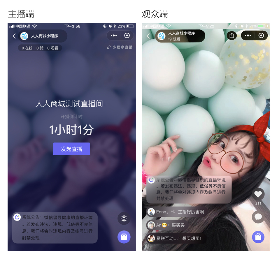 微信小程序直播包括觀眾端、主播端、微信后臺管理端及人人商城管理后臺。
